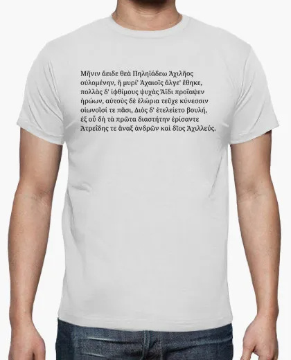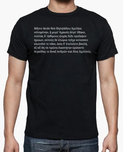 Las siete primeras líneas de la literatura occidental pertenecen a la Ilíada, el gran poema de Homero: Μῆνιν ἄειδε, θεά, Πηληϊάδεω Ἀχιλῆος / οὐλομένην, ἣ μυρί᾽ Ἀχαιοῖς ἄλγε᾽ ἔθηκε, / πολλὰς δ᾽ ἰφθίμους ψυχὰς Ἄϊδι προΐαψεν / ἡρώων, αὐτοὺς δὲ ἑλώρια τεῦχε κύνεσσιν / οἰωνοῖσί τε πᾶσι, Διὸς δ᾽ ἐτελείετο βουλή, / ἐξ οὗ δὴ τὰ πρῶτα διαστήτην ἐρίσαντε / Ἀτρεΐδης τε ἄναξ ἀνδρῶν καὶ δῖος Ἀχιλλεύς.